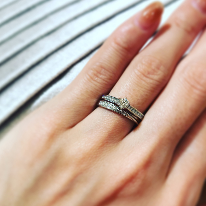 【ロイヤルアッシャー】エンゲージリング&マリッジリング重ね付け -ウィンターブライダ...